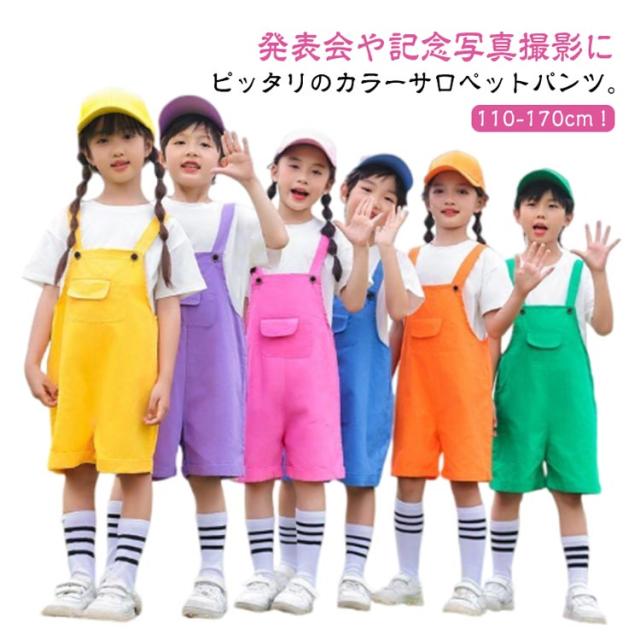 オーバーオール 春夏 ダンス衣装 サロペットパンツ サロペット 女の子 キッズ キッズ カラーパンツ 発表会 幼稚園 カラフル 男の子 卒園式 演出服 保育園 ショートパンツ 短パン 夏服 応援団 韓国子供服 無地 卒業写真撮影 記念写真