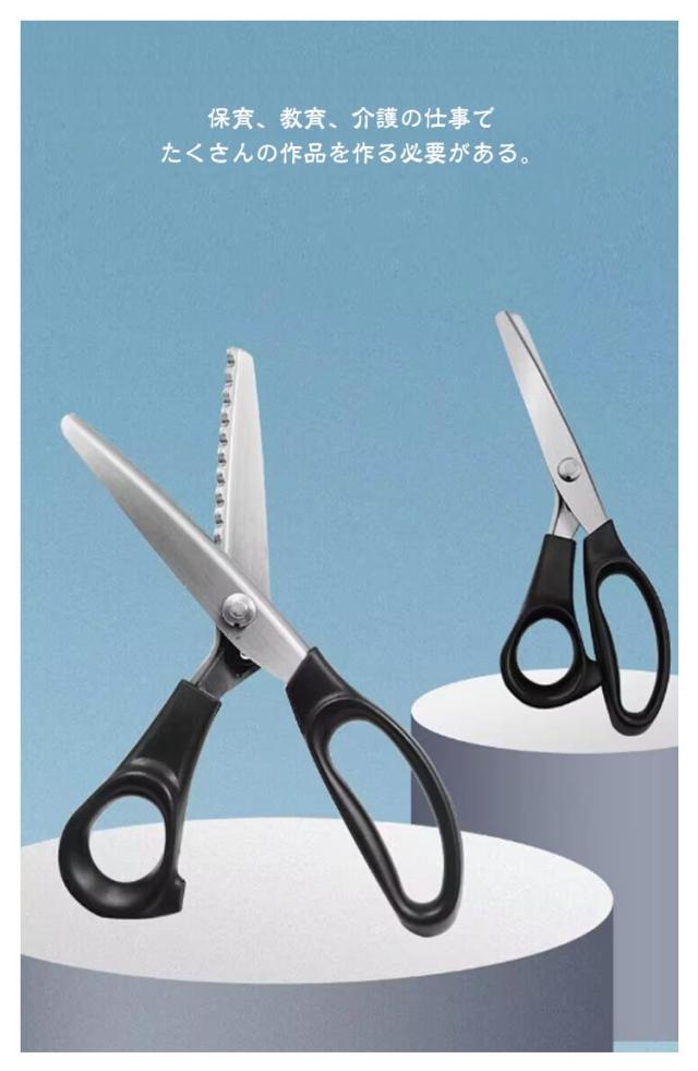 | 布をギザギザに切れるハサミ♪保育、教育、介護の仕事でたくさんの作品を作る必要がある。 そんな方におすすめしたい、しっかりとした ギザギザはさみ です。 スムーズな切れ味で、やる気がでます! 布、フェルト、紙、革等のいろいろな素材で使えます。 切り口もとっても、キレイです。 デコの楽しみが広がる6種類をご用意しております。 | |