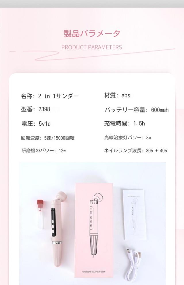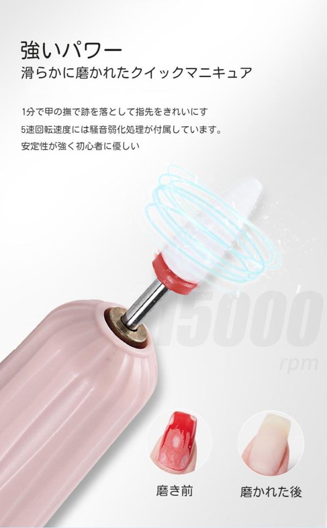 ジェルネイル 2-in-1多機能 研削ペン ネイルマシーン用 USB電動ネイルマシン ネイルドリル 電動ネイルファイル ネイルケア プロ用
