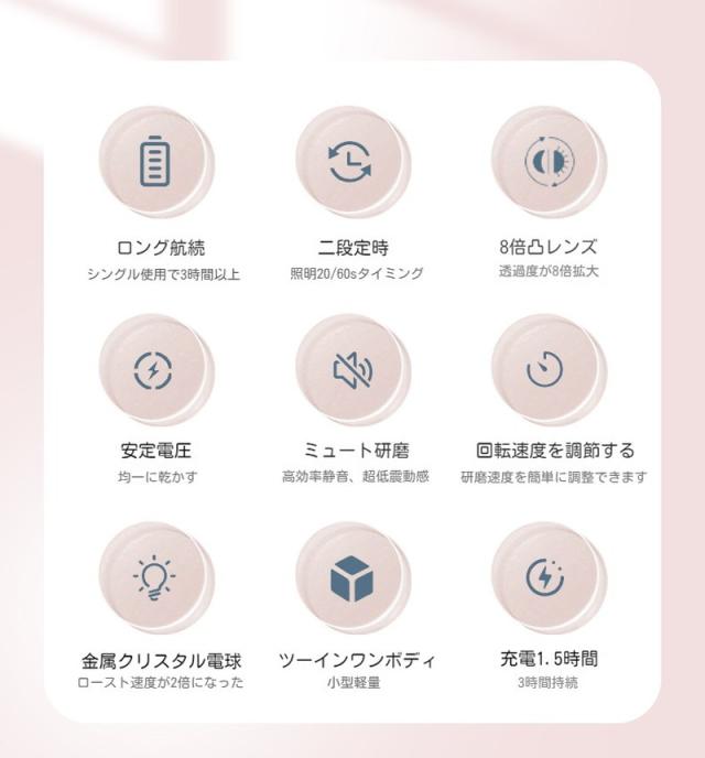 ネイルサロンに通わなくても自宅で簡単に爪を美しく整えられる電動爪切り。形づくり、表面整え、爪の輝きの3ステップで手軽に健康的なツヤのある爪に導きます。また、ネイルライト付きます。