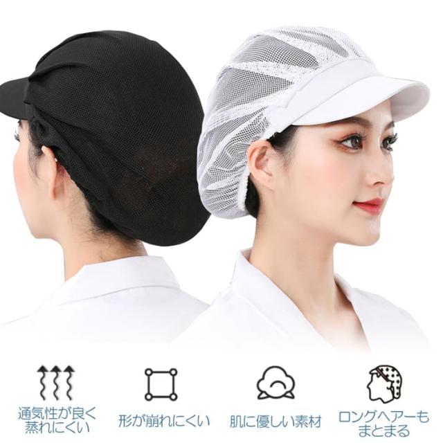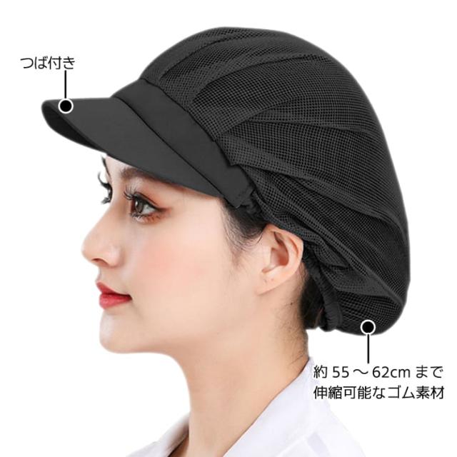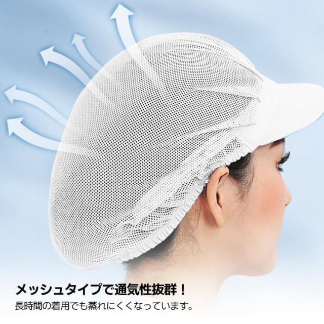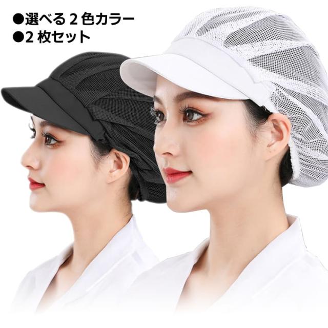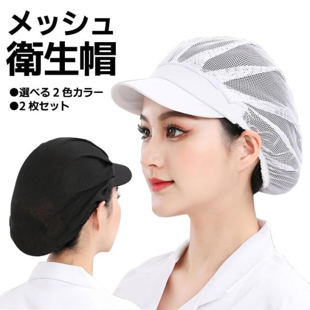衛生帽 2個セット 全メッシュ仕様 洗濯可 通気 伸縮 つば付き 作業帽 ワークキャップ 調理 食品工場 厨房 キッチン MSBS02S