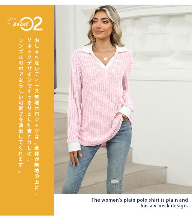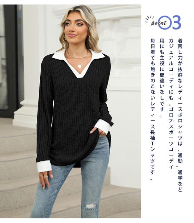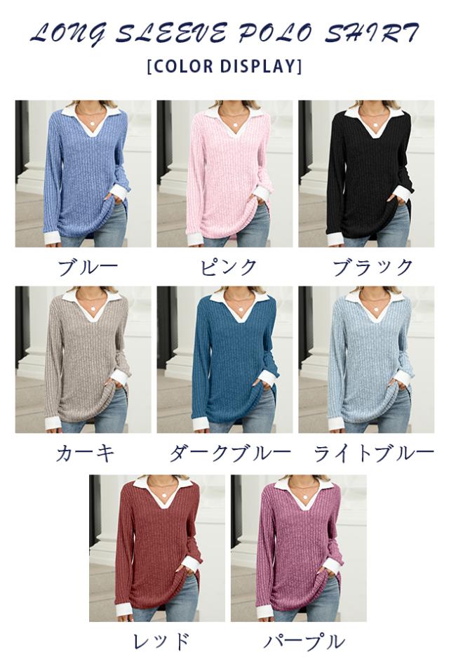 長袖ポロシャツ レディース 長袖 襟付きTシャツ 無地 ゴルフウェア テニスウエア スポーツポロ カットソー スリムフィット ポロシャツ 普段着