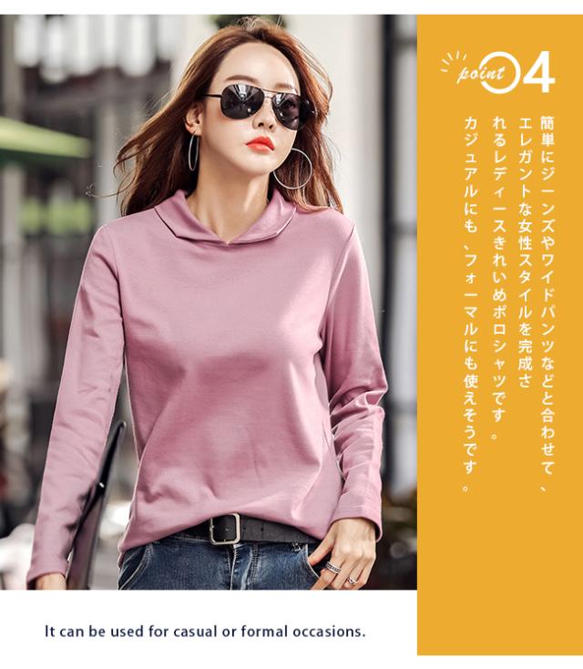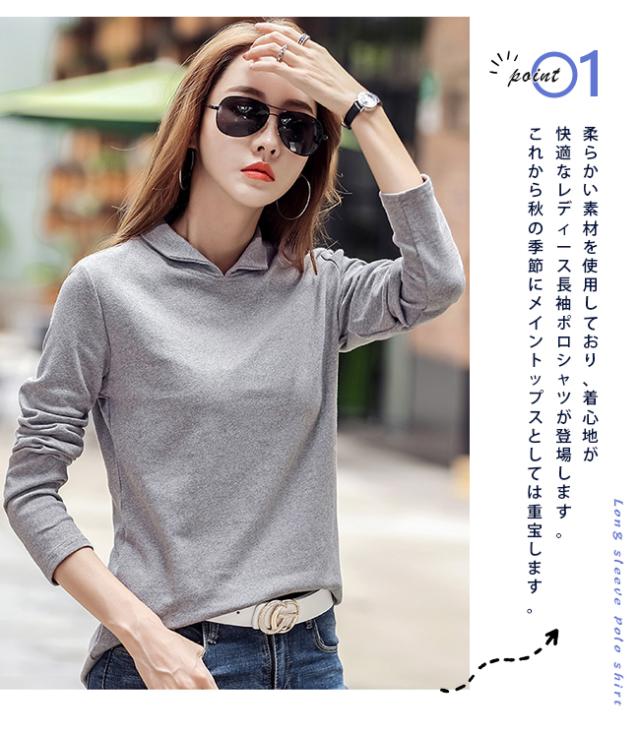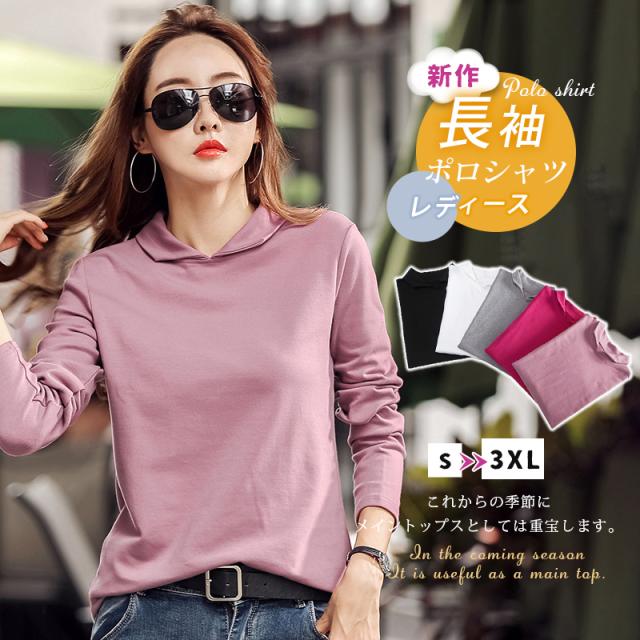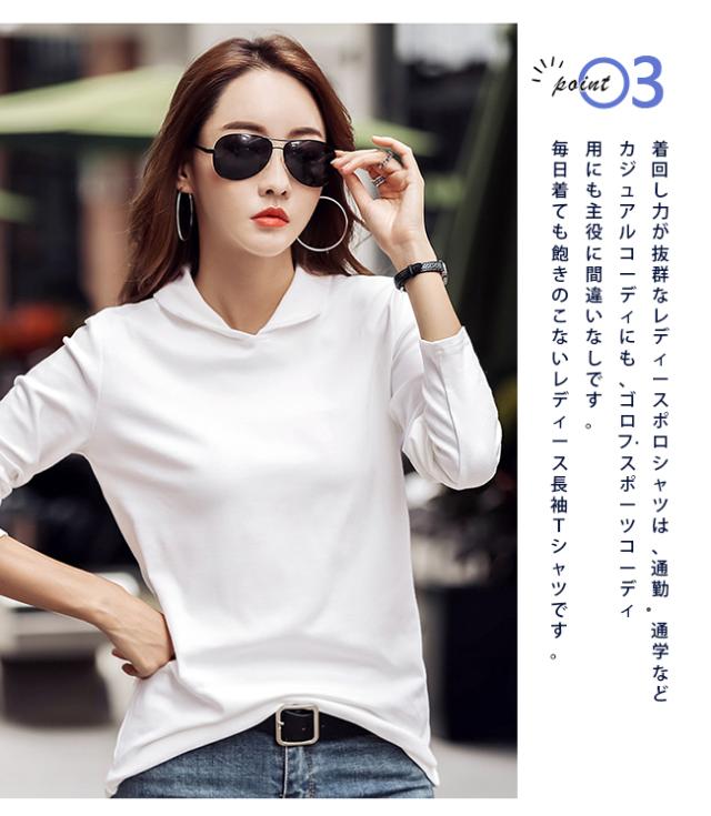 ポロシャツ レディース 長袖 綿 tシャツ 春秋 襟付き トップス カジュアル コットン カットソー シンプル 無地 秋服 トップス