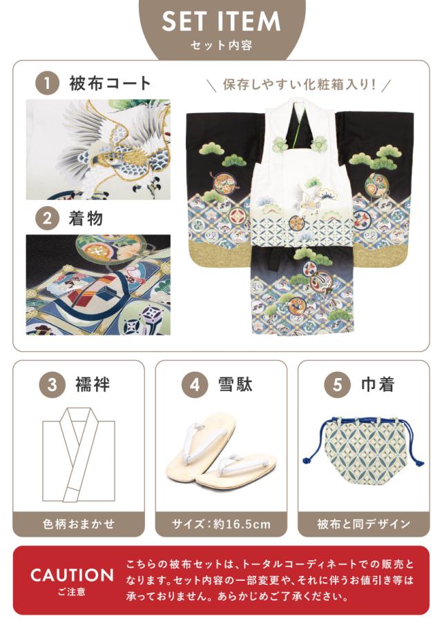 七五三 着物 3歳 レトロ 被布 販売 男の子 三歳 着物セット 被布コート 襦袢 雪駄 セット 黒 白 和装 男児 子供 送料無料