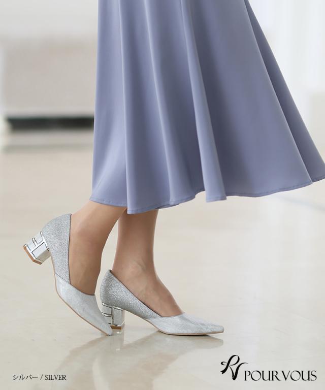 153241522 パーティーシューズ ポインテッドトゥ お呼ばれ 同窓会 レース ワンピース 50代 20代 30代 40代 同窓会 パーティードレス グリッター 謝恩会 ヒール 母 靴 チャンキー 服装 成人式