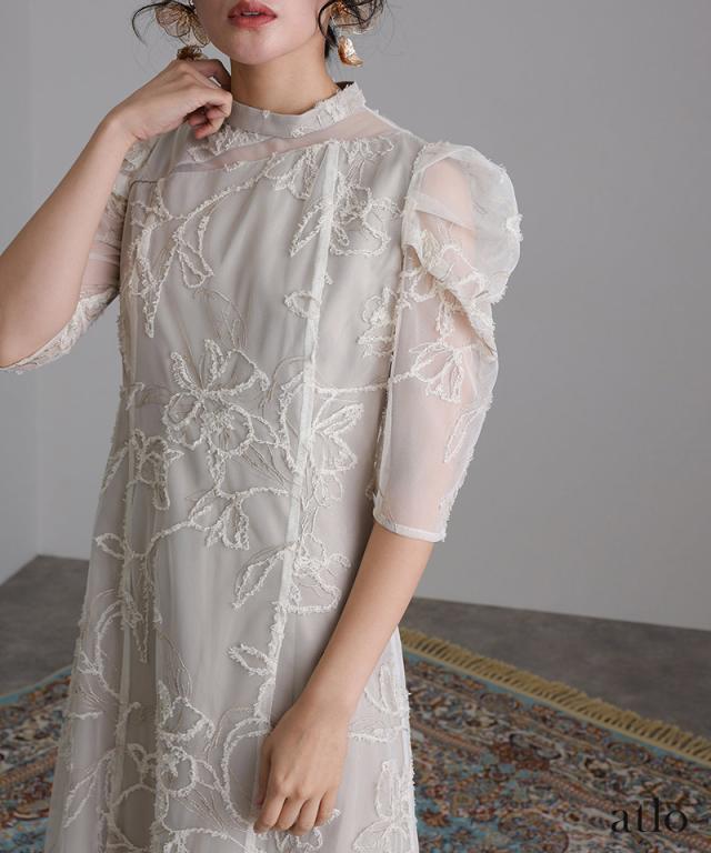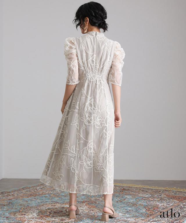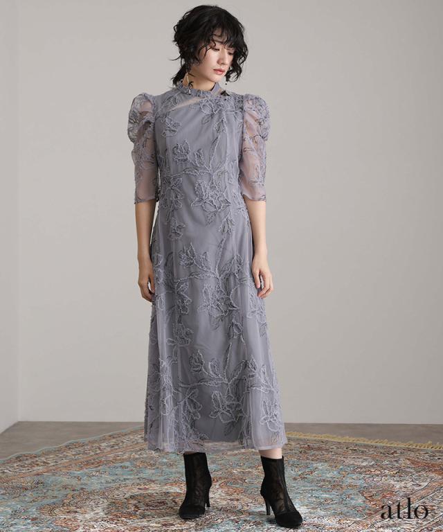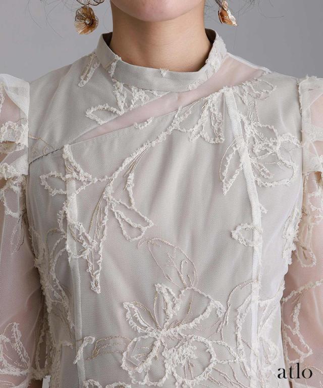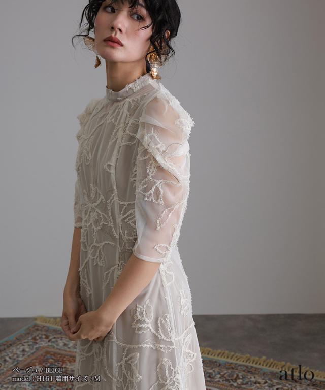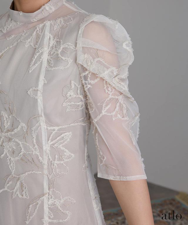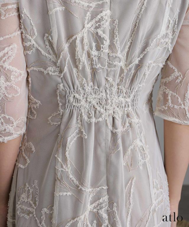 立体刺繍レースが魅力のアシンメトリーカットドレス