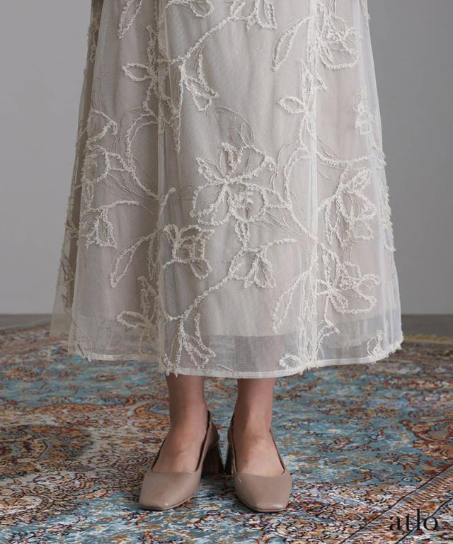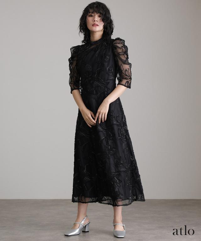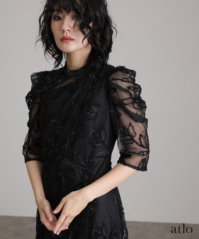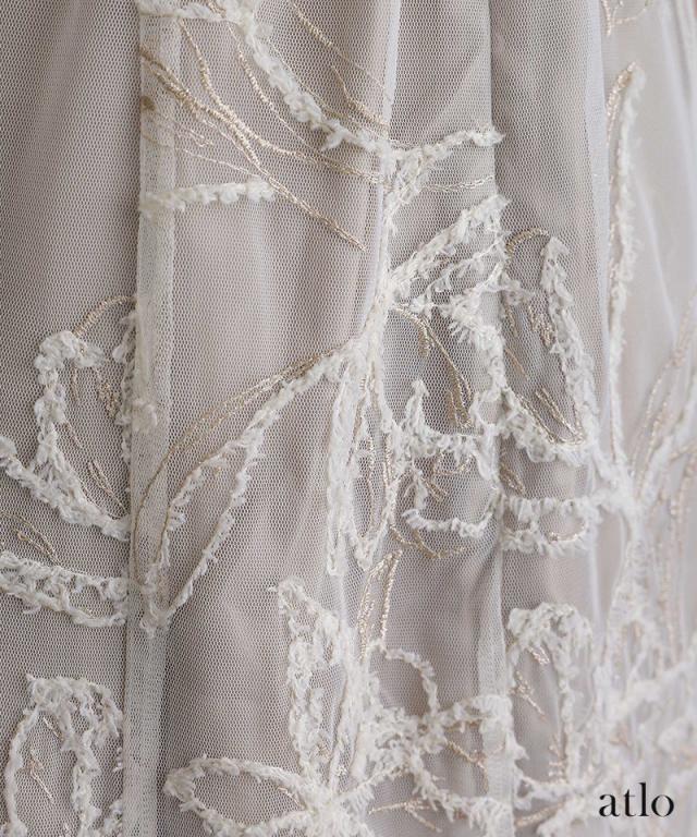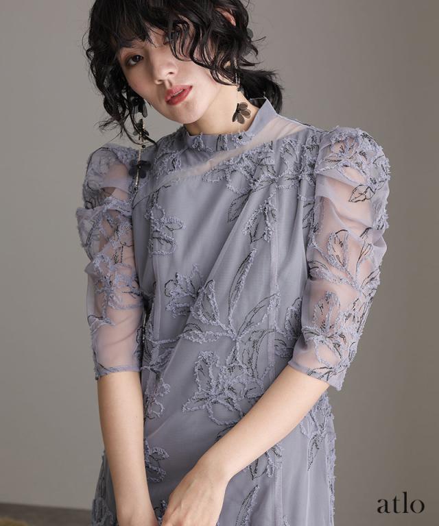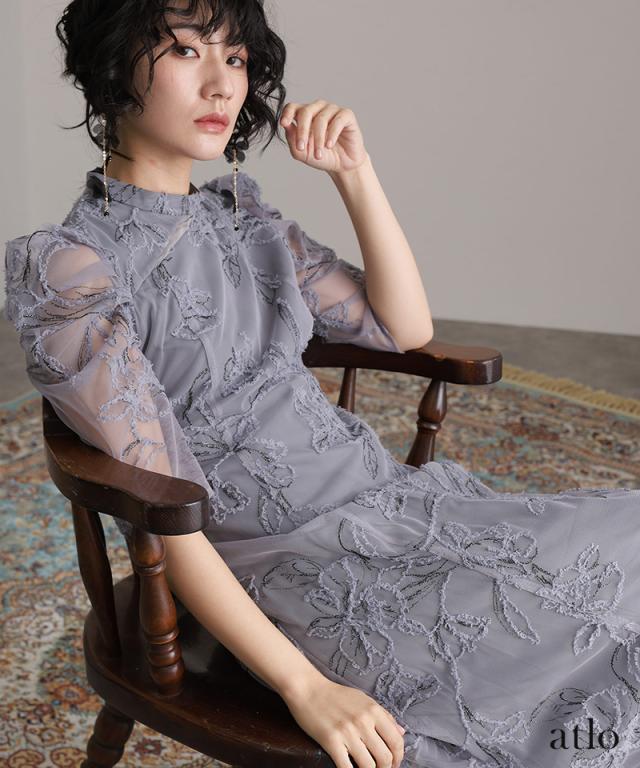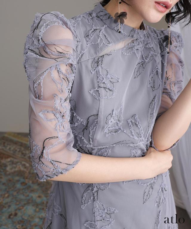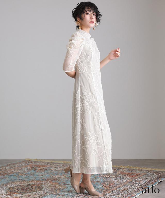 立体刺繍レースが魅力のアシンメトリーカットドレス