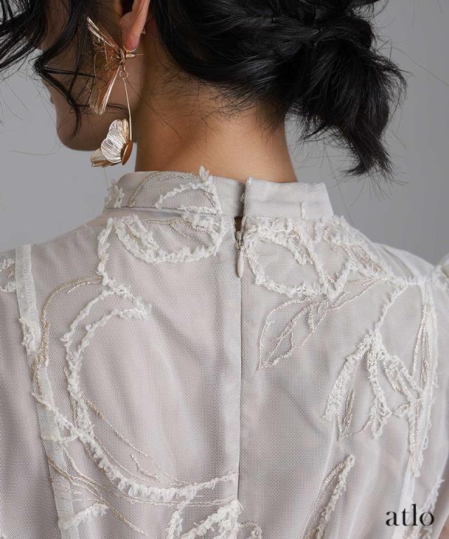刺繍アシンメトリーカットドレス【194241920】10代・20代・30代・40代・50代・ドレスワンピ・フォーマルワンピ・パンツドレス・服装・ワンピース・ドレスカジュアル・ブランド・七分袖・長袖・ロング・膝丈・薄手・厚手・無地・刺繍・脚長効果・伸縮性・キレイめ・着やせ・体型カバー・スタイルアップ・レース・リボン・ドレープ・小さいサイズ・3Lや4L・かっこいい・かわいい・即日発送・送料無料・結婚式・婚活・披露宴・顔合わせ・発表会・演奏会・二次会・同窓会・お呼ばれ・食事会・謝恩会・親族・七五三・お宮参り・冠婚葬祭・弔事・女子会・韓国・デート・入学式・卒業式・入園式・卒園式・ママ・ピアノ・マタニティー・セレモニー・セレブ・パーティー