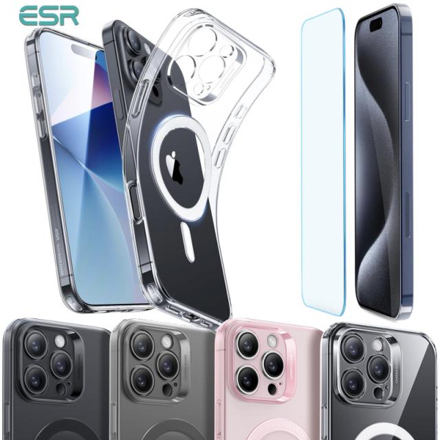 【強化ガラスフィルム付き】ESR iPhone 16 16 Pro 16 Plus 16 Pro MAX ケース MagSafe対応 カメラ保護 耐衝撃薄型カバー 黄ばみ防止 耐傷性 専用マグネットスマホケース Zeroシリーズ 半透明クリア 透明 クリア ケース TPU 保護フィルム