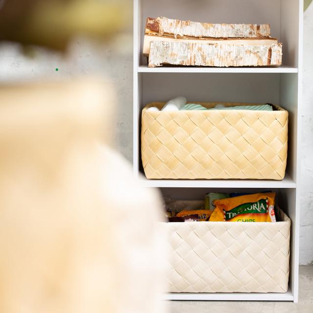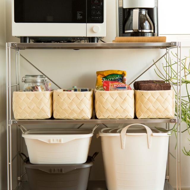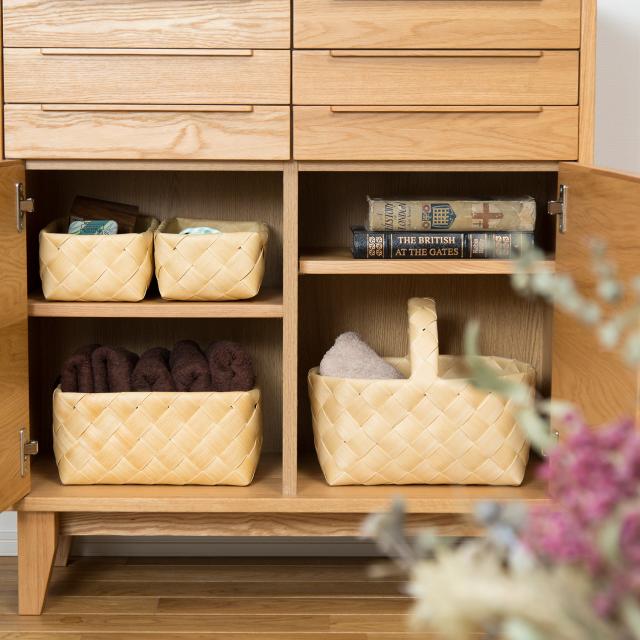 こちらはLサイズ1点とM-Lサイズ1点の2点セットです。Timb.は独自開発の新素材TENESQUE(テンネスク)を使い、「水や湿気に強い」「しなやかで柔らかい質感」「ささくれない」などの多数の機能性を追及した、マルチに使える多機能バスケットです。その特性はキッチンなどの水まわり、サニタリーのタオル入れ、子供部屋のちょとした収納、机横のゴミ箱など、使い方を選びません。職人さんたちが手編みで作るかごは、一つ一つ心のこもった優しさを感じる美しさ。