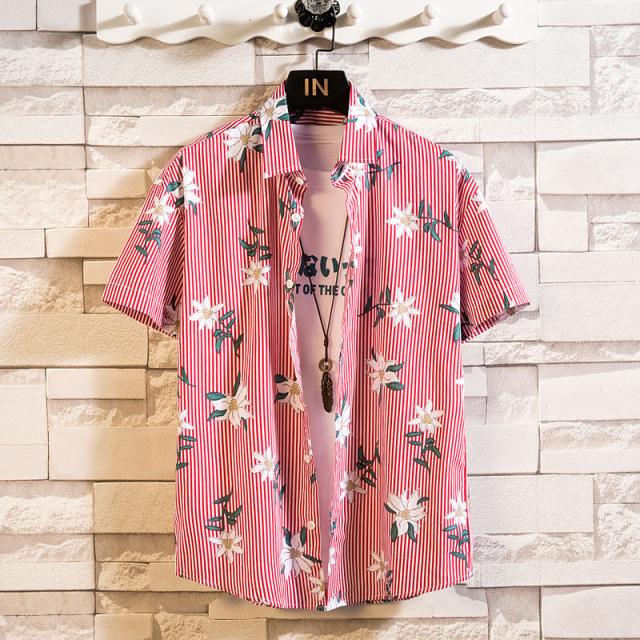 シャツ メンズ カジュアルシャツ 半袖 アロハシャツ 綿 ボタンダウン 花柄 総柄 開襟 ヴィンテージ ゆったり 着痩せ ビーチ