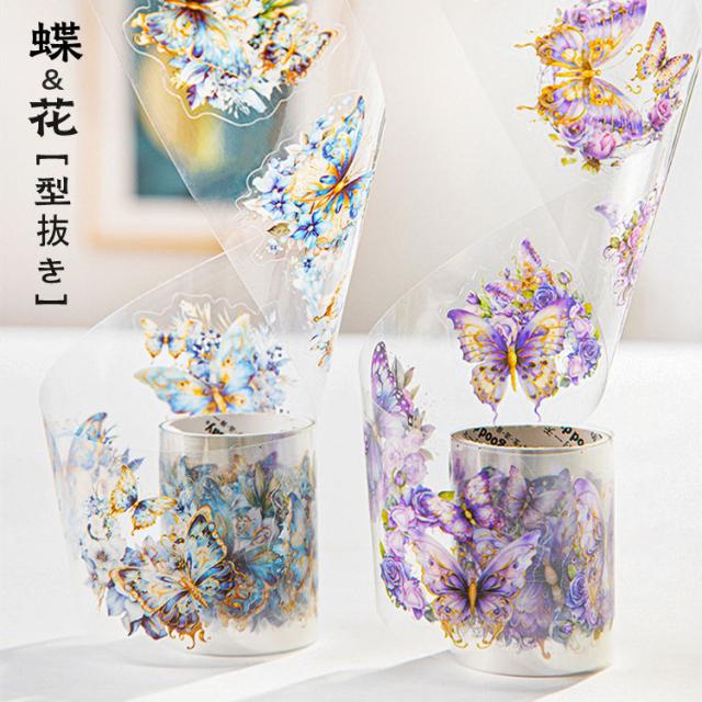 型抜き クリアテープ ダイカット ワイドタイプ 幅広50mm 蝶々 花柄 コラージュ 素材 透明テープ 剥離紙 シール テープ PET 透明 シール 薔薇 ローズ バラ バタフライ 花柄 植物柄 フラワー イラスト ステッカー デコレーション 手帳 デコ 日記 手紙 アレンジ DIY