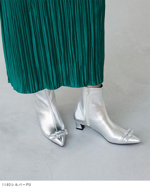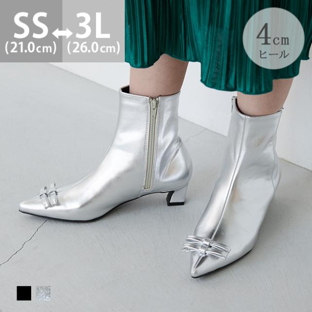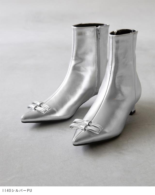 ブーツ ショートブーツ ミドルブーツ ショート ミドル レディース ポインテッドトゥ ポインテッド とんがりトゥ りぼん リボン リボンブーツ デザインヒール 変形ヒール フラット 巻きヒール 高反発クッション 高反発 クッション 屈曲性 すべりにくい 痛くない 歩きやすい 疲れない 疲れにくい 大きいサイズ 小さいサイズ あったか 雪 雪の日 防寒 デート おでかけ お出かけ カフェ ショッピング 買い物 屋外 外履き デイリー 日常 普段使い 日常使い 普通履き 4cmヒール 4センチヒール ミドルヒール 2E 黒 ブラック 銀 シルバー 2S SS 21cm 21.5cm S 22cm 22.5cm M 23cm 23.5cm 2L LL 25cm 25.5cm 3L LLL 26cm L 24.cm 24.5cm 秋 冬 スムース調 合皮 PU menue メヌエ outletshoes アウトレットシューズ welleg ウェレッグ