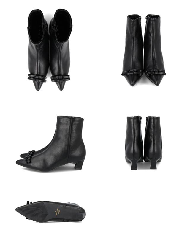 リボンを取り入れた今季トレンドのバレエコアスタイルのブーツ。大きすぎない2連のリボンは控えめながらきちんと存在感もあり。