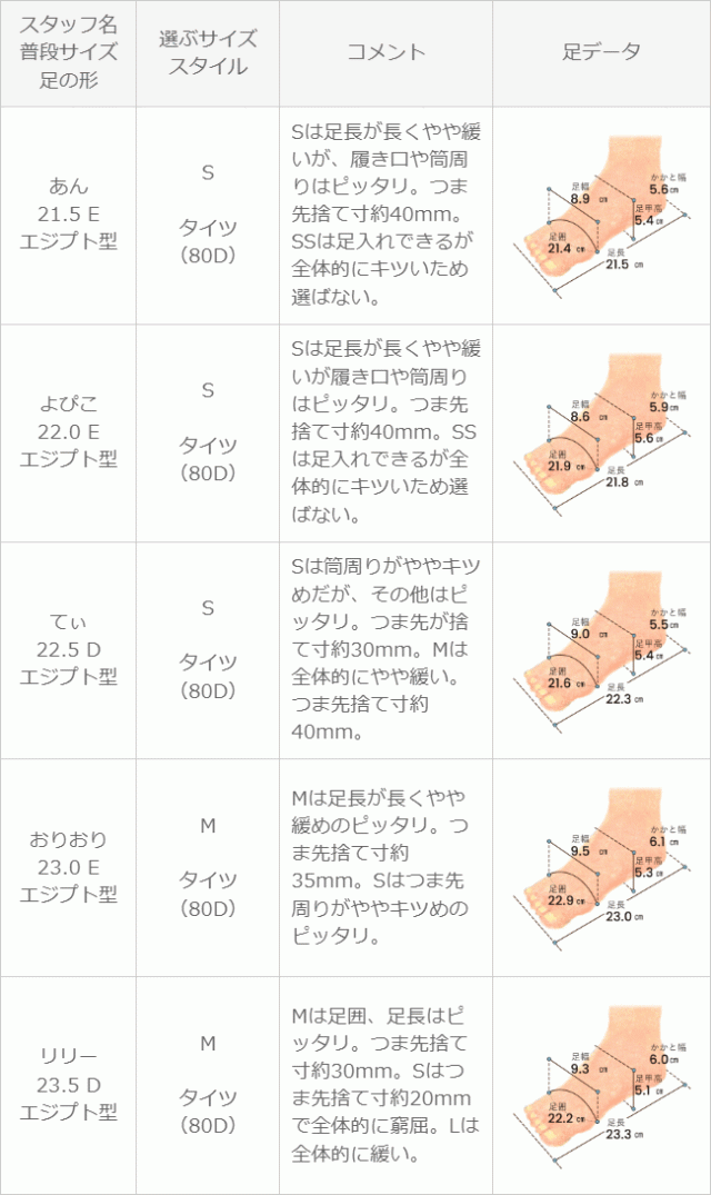 ※足の形には個人差があります。スタッフ試着感想は参考程度にお考え下さい。