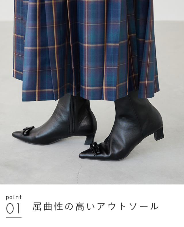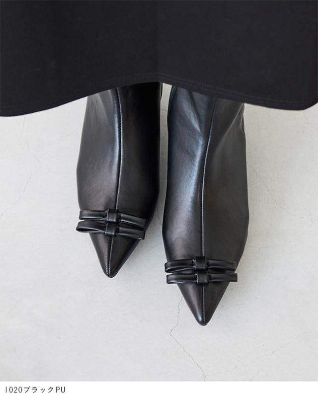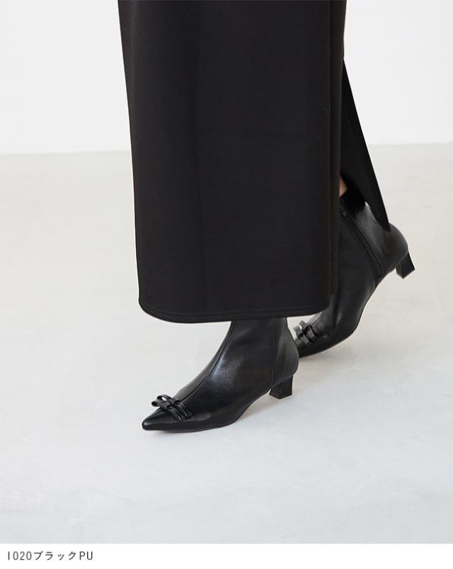 ブーツ ショートブーツ 痛くない レディース 変形ヒール 歩きやすい ポインテッドトゥ リボンブーツ 送料無料