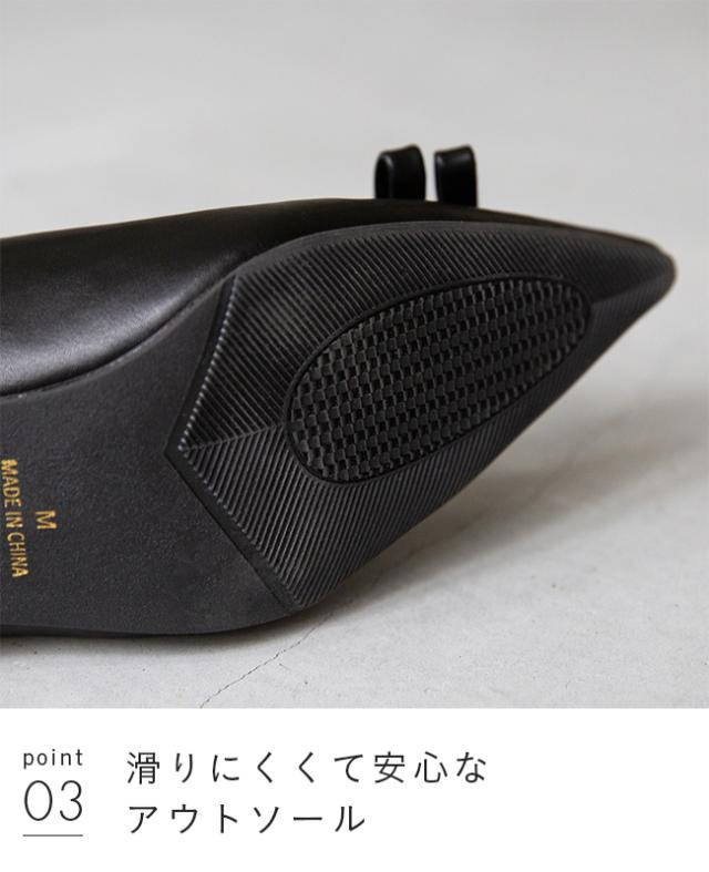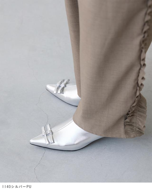 甘すぎない形のリボンとポインテッドトゥが甘さを控えめにしてくれる大人なデザインのアイテムです。
