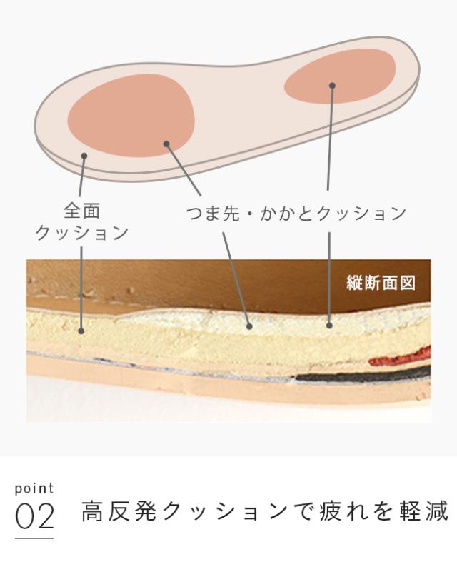 歩くとき体重のかかる部分をサポートしてくれる、ふわふわの高反発インソールだから長時間歩いても疲れにくい。