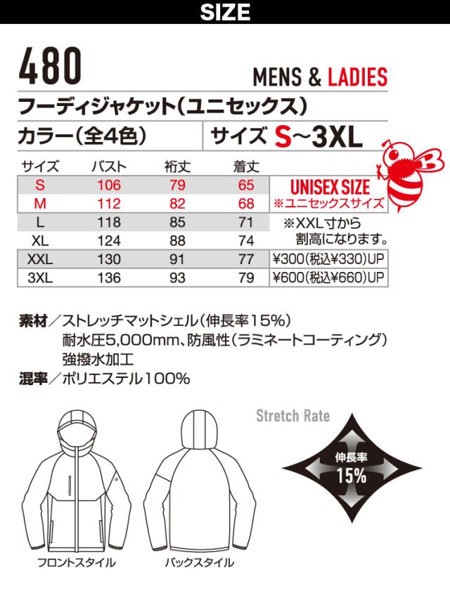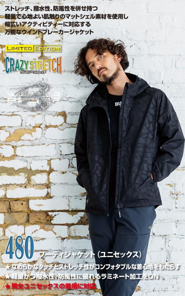 秋冬 バートル BURTLE 480 秋冬用 フーディジャケット 防寒着 撥水 防風 軽量ストレッチ ウィンドブレーカー 企業 法人 作業 工場 外作業 ワークユニフォーム 土木 工事 現場 S~3XL メンズ ユニセックス 男女兼用 作業服 作業着