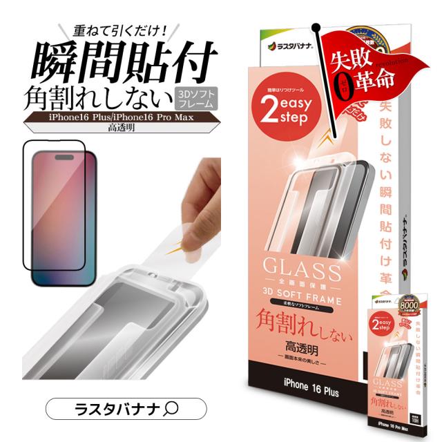 iPhone16 Plus 16 Pro Max iPhone15 Plus ガラスフィルム 全面保護 高光沢 高透明 クリア 貼付革命 瞬間貼り 角割れしない ラスタバナナ