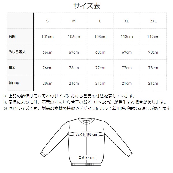 XL:身長177-183/胸囲97-100/ウエスト73-89