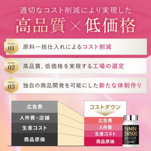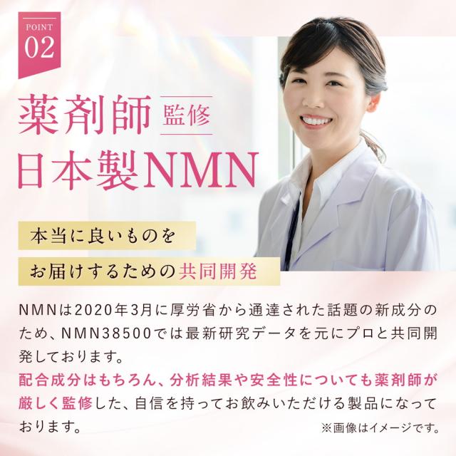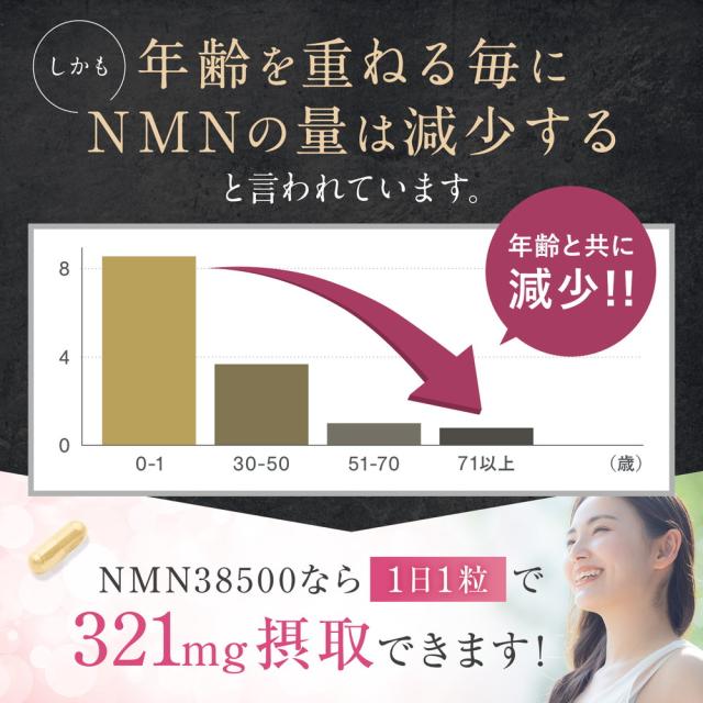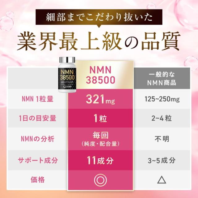 NMN38500は、今話題のNMNを1本に38,500mg配合。業界屈指の配合量を誇る「NMNサプリメント」です。