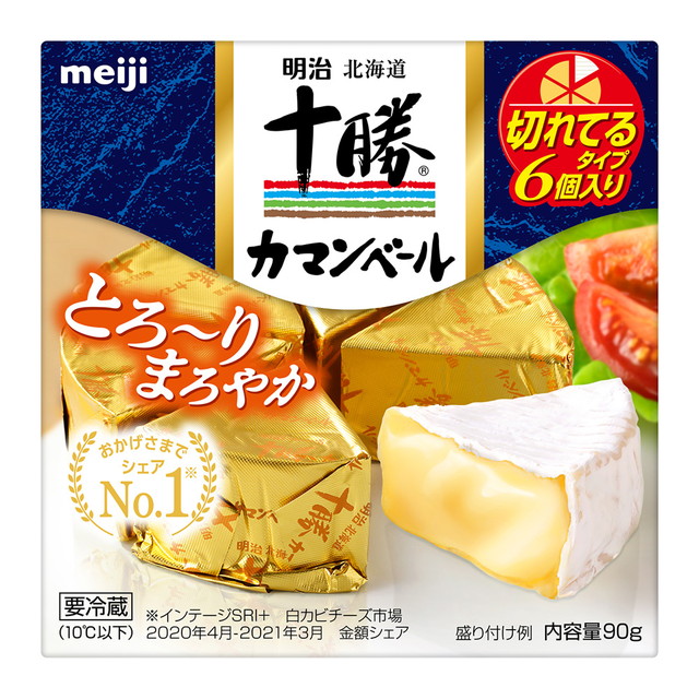 北海道十勝産の生乳から作られたカマンベールです。日本人に合ったクセが少なく、食べやすい風味が特徴です。明治北海道十勝カマンベール切れてるタイプは、カットする手間なく手軽にお召し上がりいただけます。おかげさまでシェアNO.1を獲得しました。お客様にとってのNO.1であり続けるために進化を続けていきます。