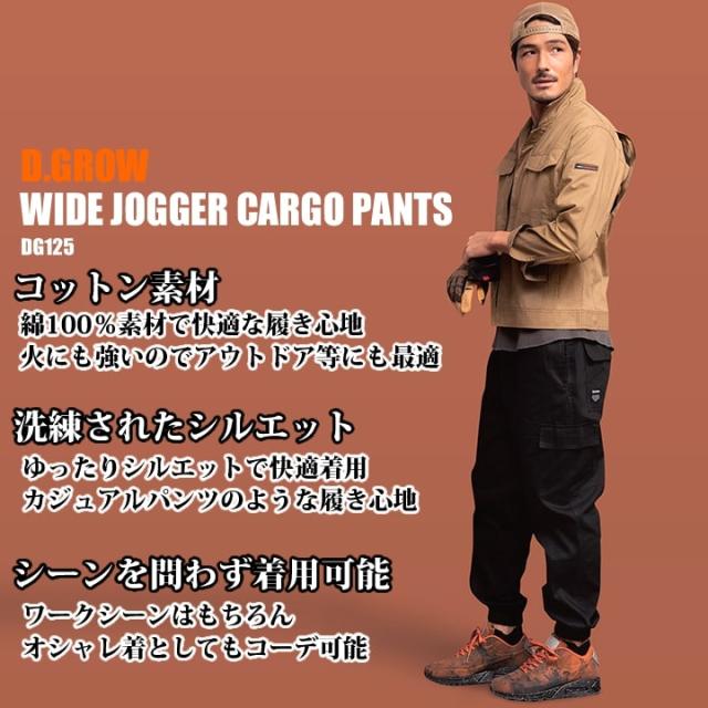 【即日発送】ジョガーパンツ カーゴパンツ ワイドパンツ コットン DG125 D.GROW クロダルマ イージーパンツ ウエストゴム ゆったりシルエット キャンパス生地 ズボン 春夏 秋冬 年間 アウトドア DIY 作業服 作業着
