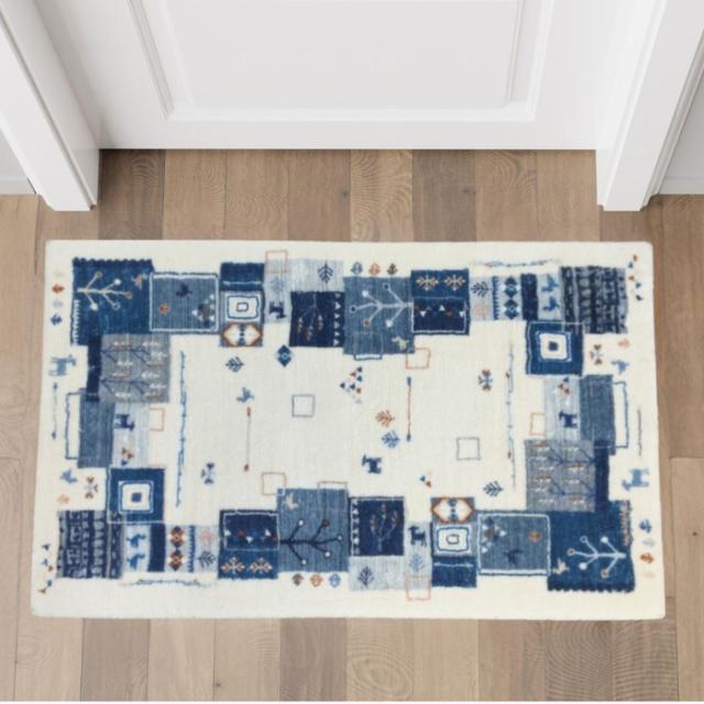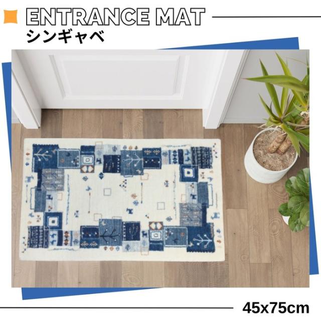 やわらかい踏み心地 玄関マット シンギャベ 45x75cm ブルー色 室内用玄関マット おしゃれ かわいい ふかふか