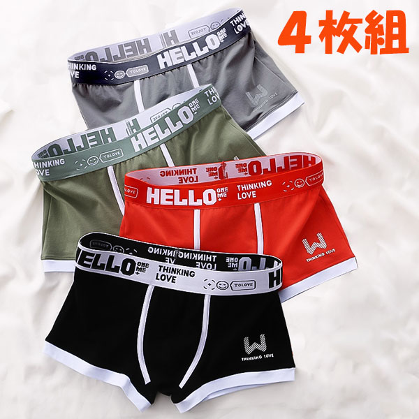 ボクサーパンツ メンズ 下着 ローライズ ブリーフ おしゃれ お洒落 綿 コットン ライン 4枚セット