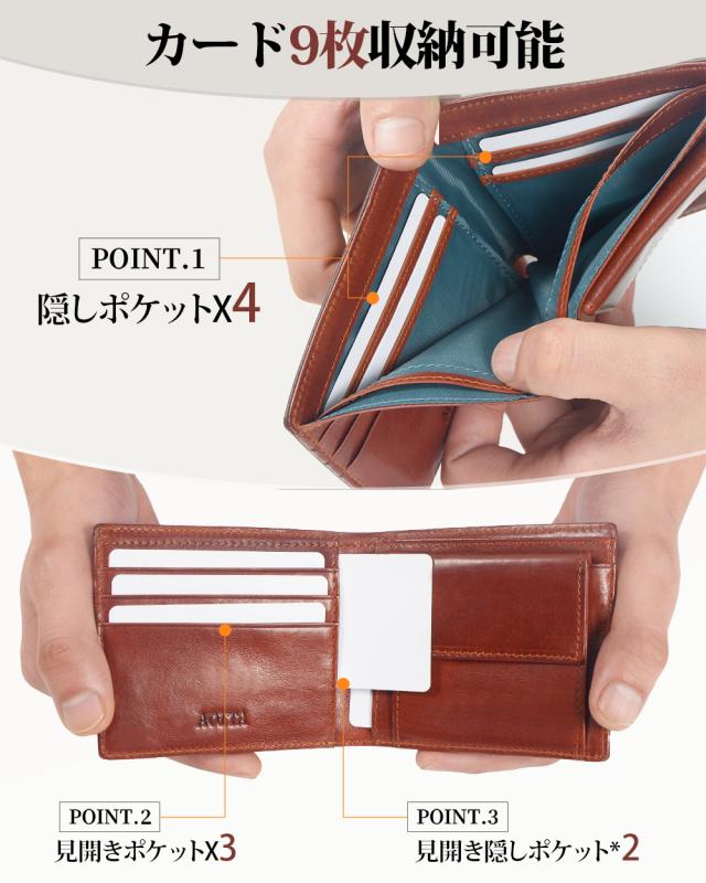 二つ折り財布 メンズ財布 本革製 大容量収納 カード収納 高級感 シンプルデザイン 本革 カードケース カード入れコインケース 小銭入れ