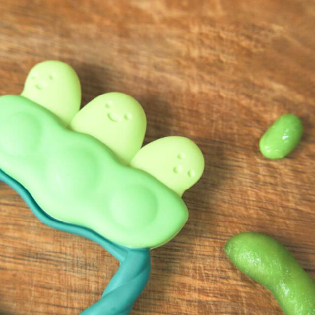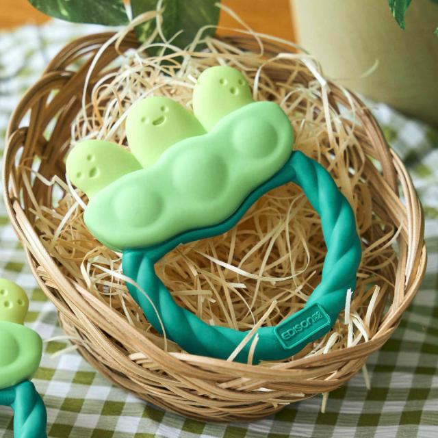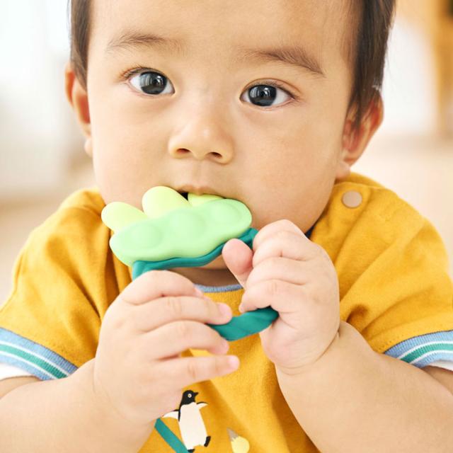 ●お顔をのぞかせた3つの枝豆がキュートな歯がためです。