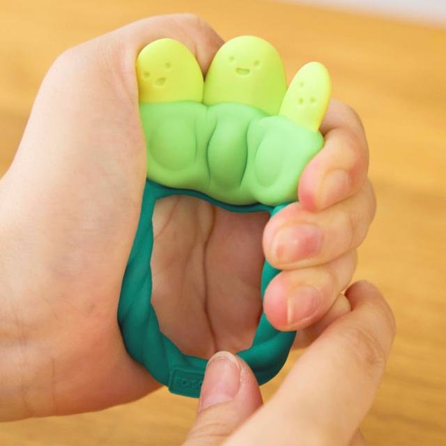 やわらかいエラストマー製で、思う存分カミカミできます。凸凹形状がやさしく歯茎を刺激してムズムズを解消します。夜泣きをおさめ、あごの発達を手助けします。