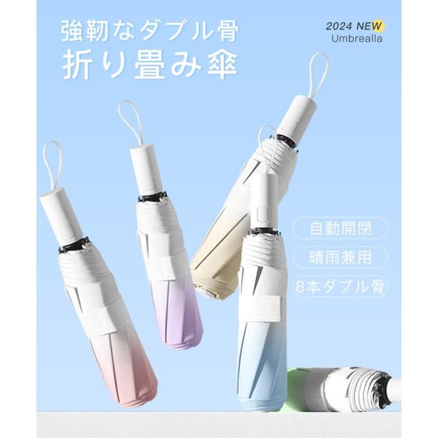 折りたたみ傘 折り畳み傘 自動開閉 晴雨兼用 8本ダブル骨 強靭なダブル骨 グラデーションカラー UVカット 撥水加工 耐風 遮熱層 遮光 軽量 紫外線対策