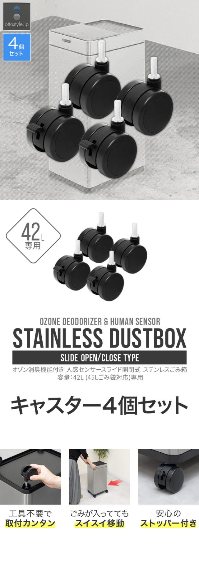 自動開閉 ゴミ箱 専用キャスター4個セット オゾン消臭機能付き 人感センサー開閉式ごみ箱シリーズ 42L用 人感センサー ステンレスごみ箱 センサー自動開閉 ダストボックス ※キャスターのみ/ゴミ箱本体別売 1年保証 送料無料