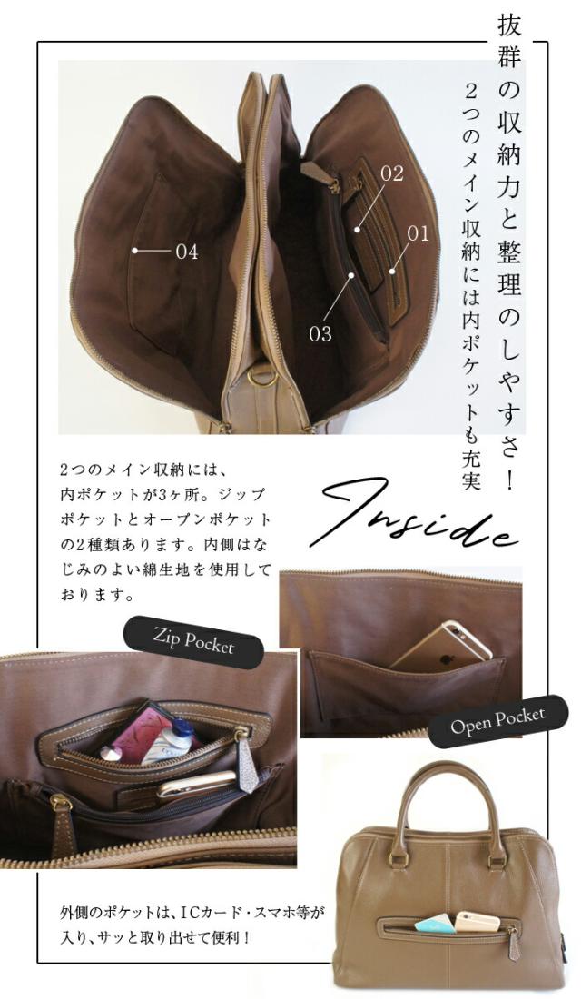 ■ポケット:外側 ジップポケット1、内側 ジップポケット2 オープンポケット1