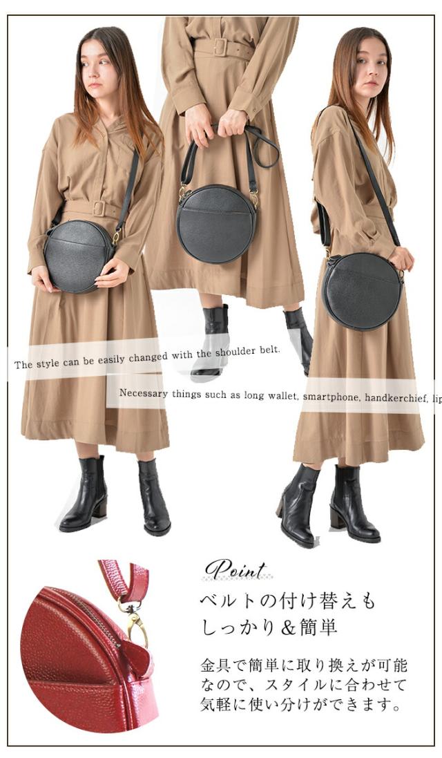 【上質 本革】 圧倒的に かわいい 丸型 ショルダーバッグ 本革 レディース バッグ 【フラヴィ】 斜めがけ 軽い 小さめ 円形 丸 ミニ バッグ 旅行バッグ 2WAY ポシェット 牛革 革 レザー 大人 黒 30代 40代 50代 散歩 バッグ