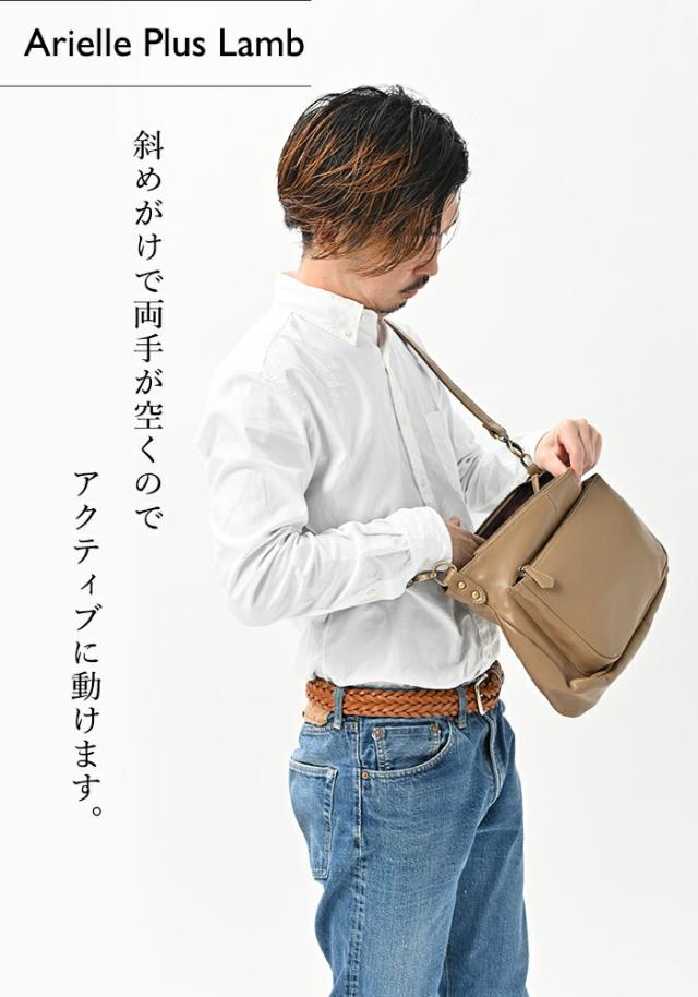 【上質な柔らかい ラム革 】 本革 ショルダーバッグ メンズ 【アリエル・プラス・ラム】 斜めがけ 通勤 ビジネスバッグ サコッシュ 男性 レザー 羊 革 2way 旅行 プレゼント ギフト 誕生日 30代 40代 50代 60代 牛革 バック 黒 カバン