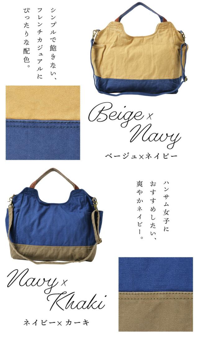 ■カラー: ベージュ×ネイビー(紺) カーキ×ブラウン(茶色) ネイビー(紺)×カーキ オリーブ×ブラウン(茶色) オールドオレンジ×ダークブラウン(こげ茶) グレー(灰色)×ナチュラル ナチュラル×ブラック(黒)