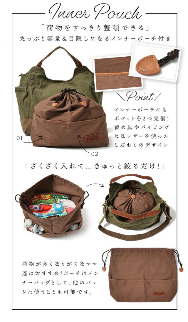 マザーズバッグ「専用」ではありませんので、マザーズバッグの「いかにも感」がありません。ご主人が持ってもOK!