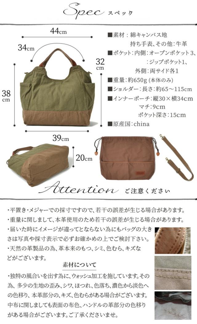 ■素材:綿キャンバス地 持ち表、その他-牛革