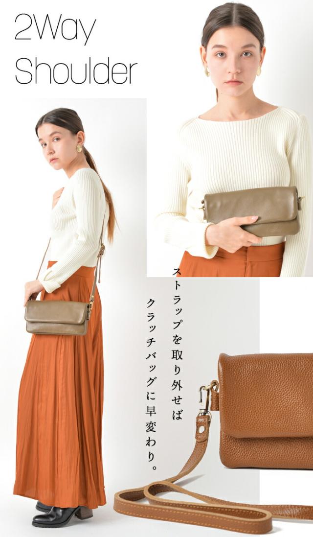 斜めがけのミニショルダーバッグにもクラッチにもなる2WAY仕様。