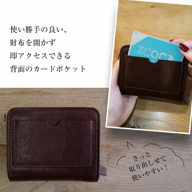 ■ポケット:外側 背面カード収納1、ファスナー付き小銭入れ(中仕切りあり) 内側 カード収納6、札入れ1