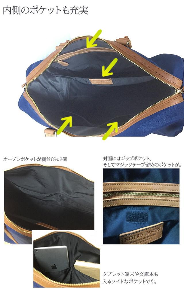 ■ポケット:外側サイド-オープンポケット2 内側-ジップポケット1 オープンポケット3