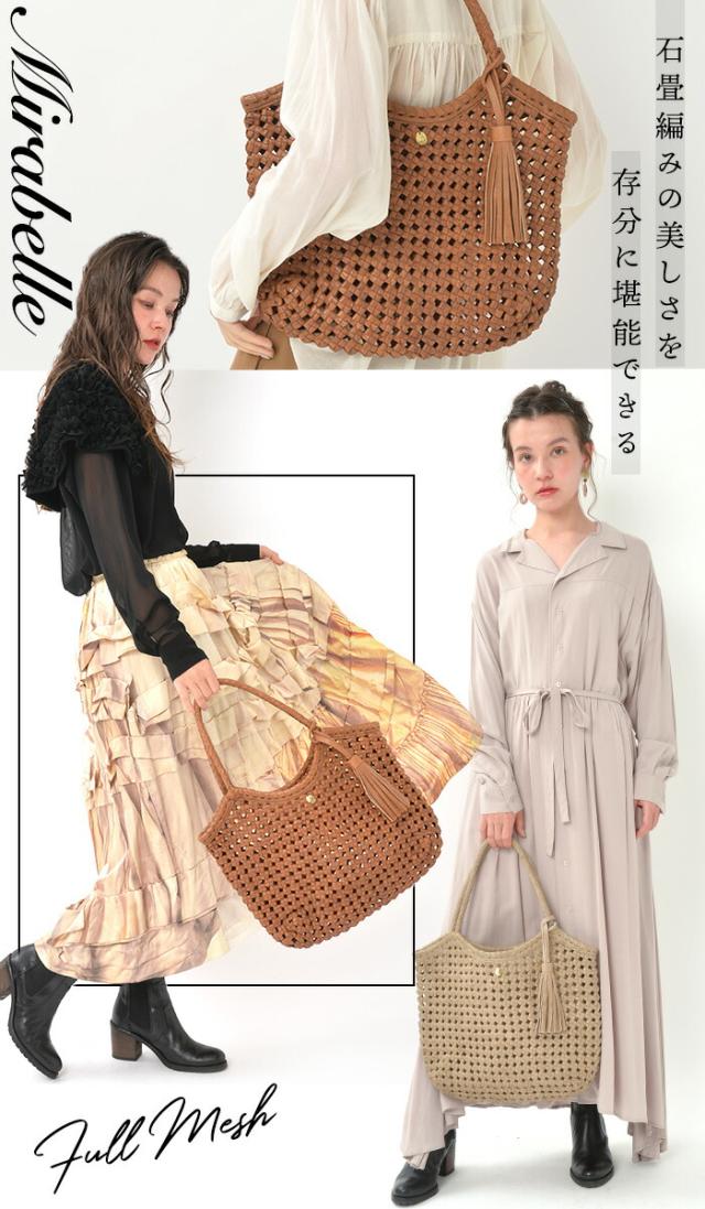 【上質 本革】【ハンドメイド製品】 本革 メッシュ トートバッグ かごバッグ 夏 バッグ 【ミラベル・フルメッシュ花結び編み】 レディース カゴ メッシュバッグ 本革バッグ 革 ミニトート レザー バッグ 花結び編み 花編み 石畳編み サマーバッグ