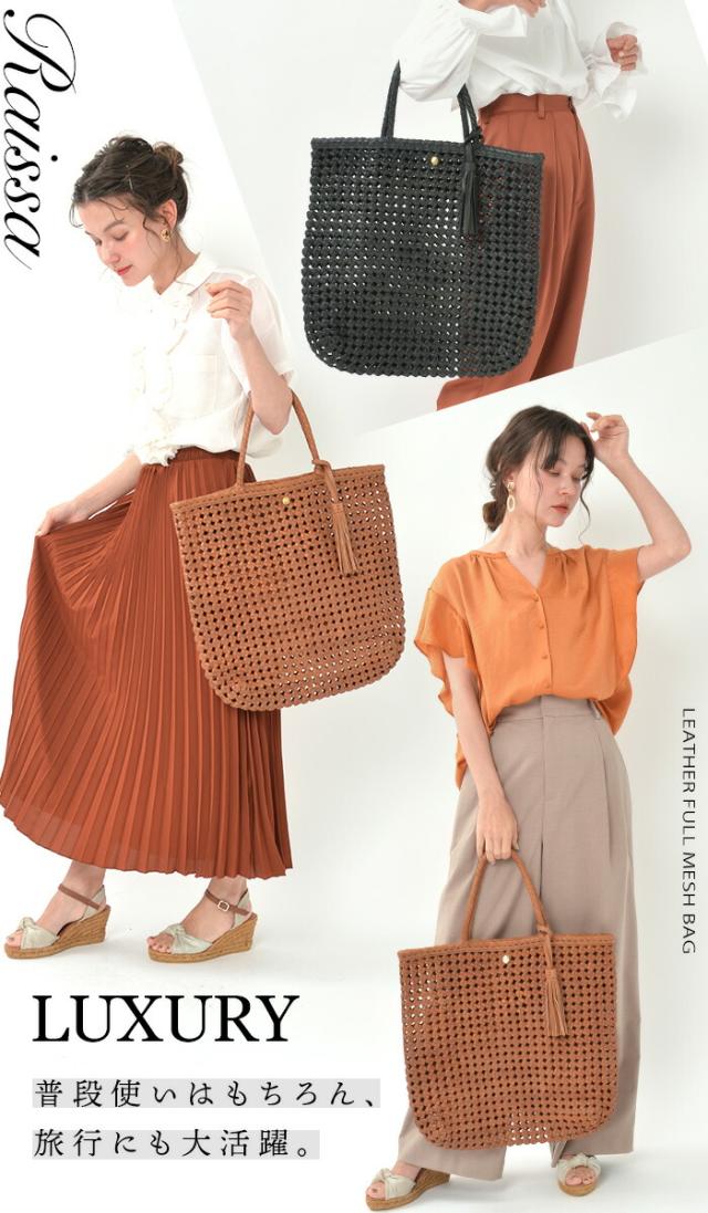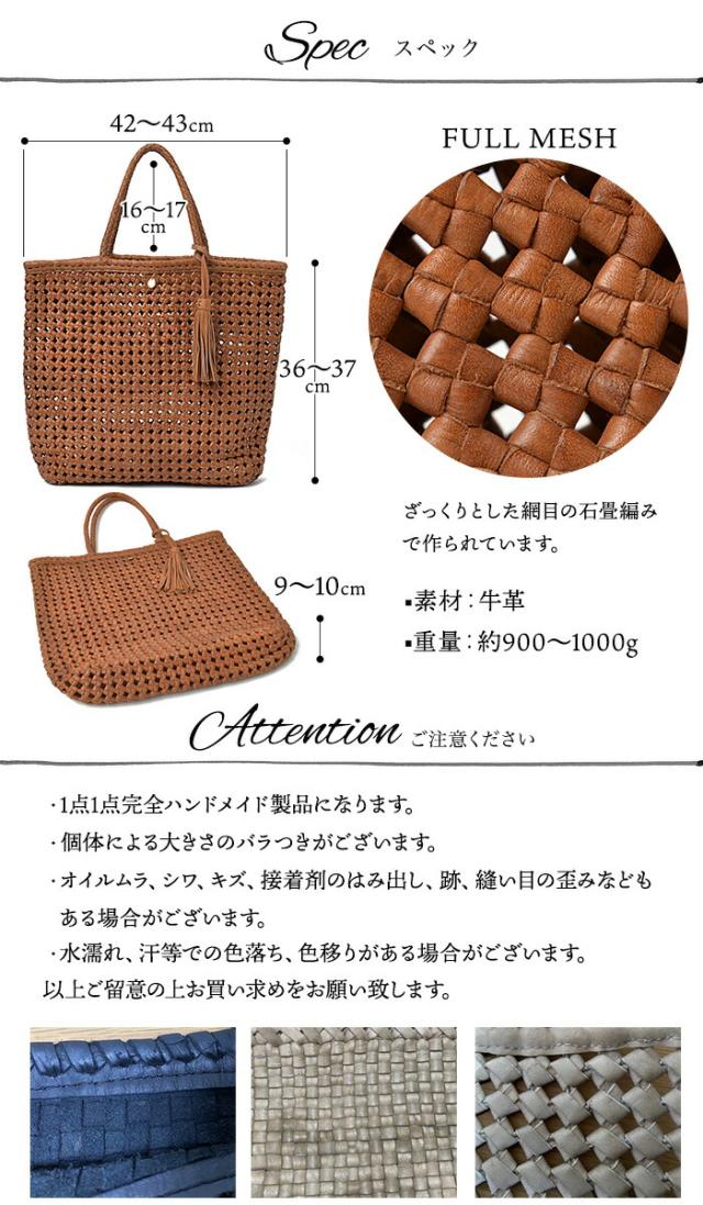 【上質 本革】【ハンドメイド製品】 本革 メッシュ トートバッグ かごバッグ 夏 バッグ 【ライザ・フルメッシュ花結び編み】 レディース 大きめ 大容量 カゴ A4 通勤 メッシュバッグ 本革バッグ 革 レザー バッグ 花結び編み 花編み 石畳編み サマーバッグ