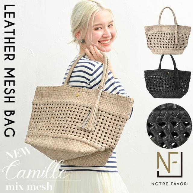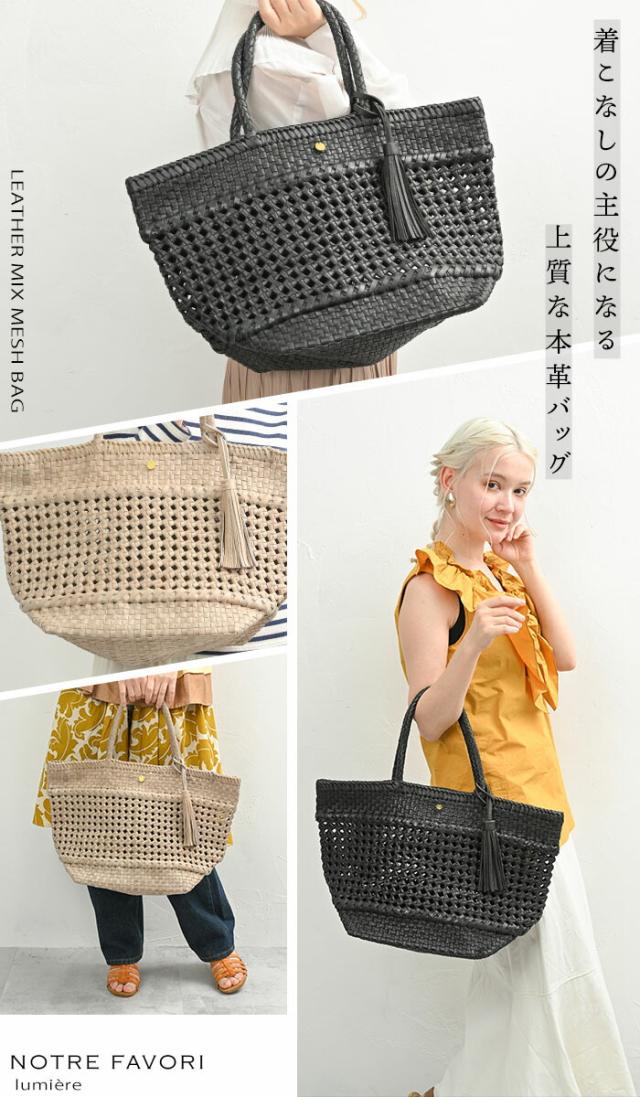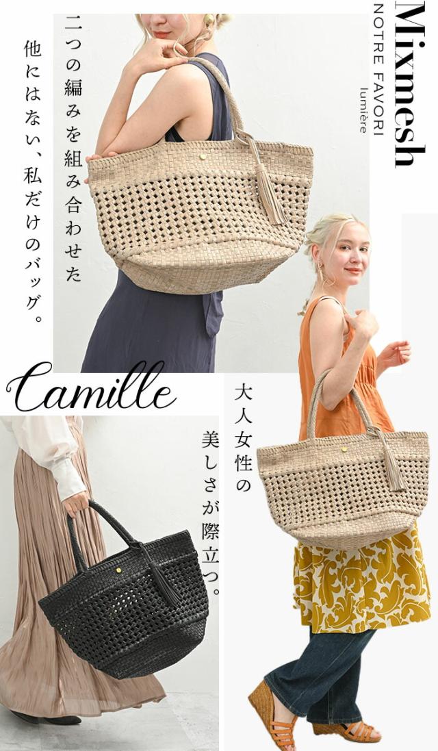 【上質 本革】【ハンドメイド製品】 本革 メッシュ トートバッグ かごバッグ 夏 バッグ 【カミーユ・MIXメッシュ】 レディース カゴ メッシュバッグ 本革バッグ 革 レザー バッグ 通勤 大きめ 大容量 A4 花結び編み 花編み 石畳編み 六角花編み サマーバッグ