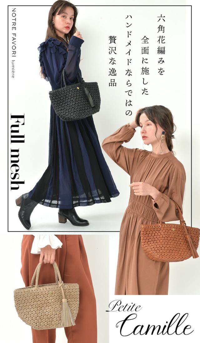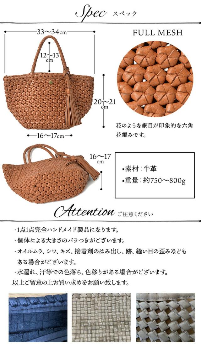 【上質 本革】【ハンドメイド製品】 本革 メッシュ トートバッグ かごバッグ 夏 バッグ 【プチ・カミーユ・フルメッシュ六角花結び編み】 レディース カゴ メッシュバッグ 本革バッグ 革 ミニトート レザー バッグ 花結び編み 花編み 石畳編み 六角花結び編み サマーバッグ