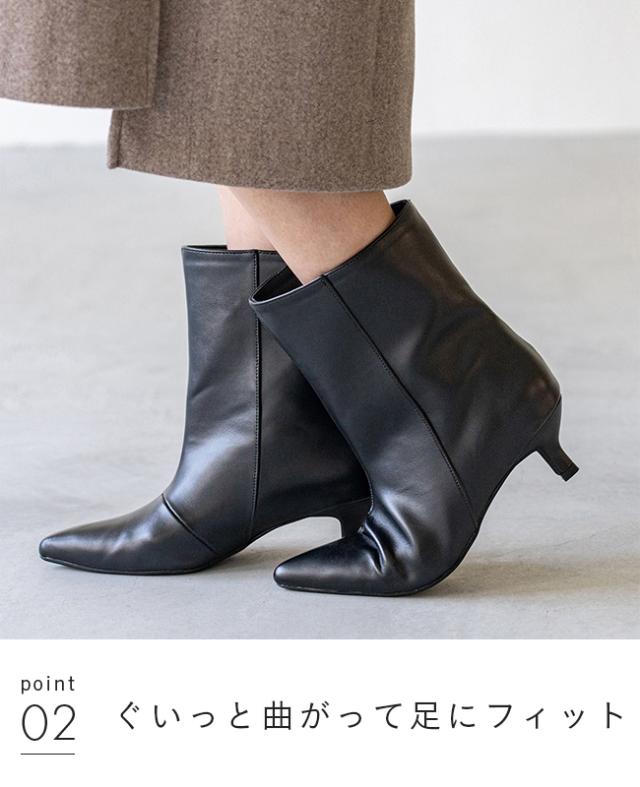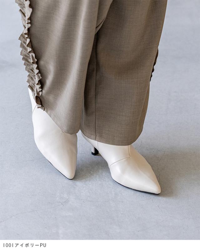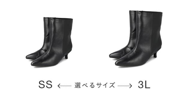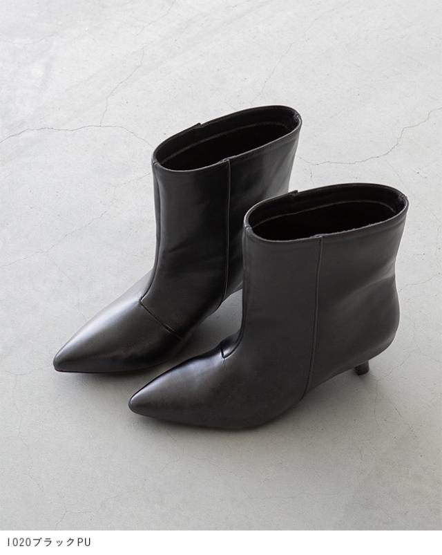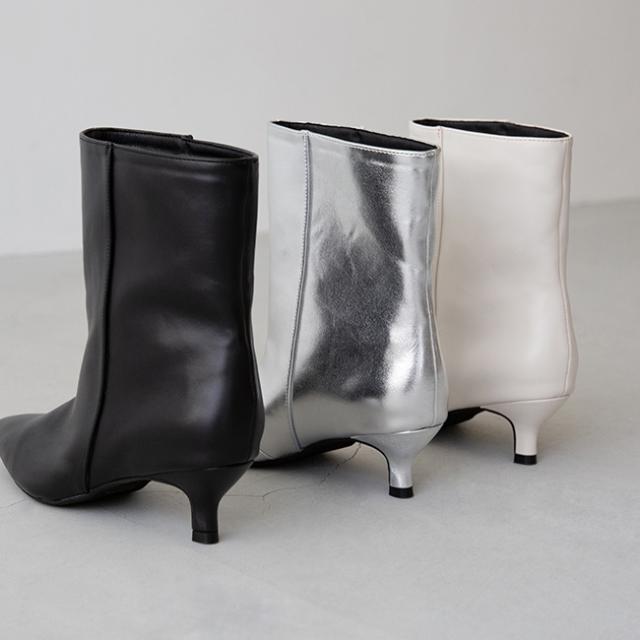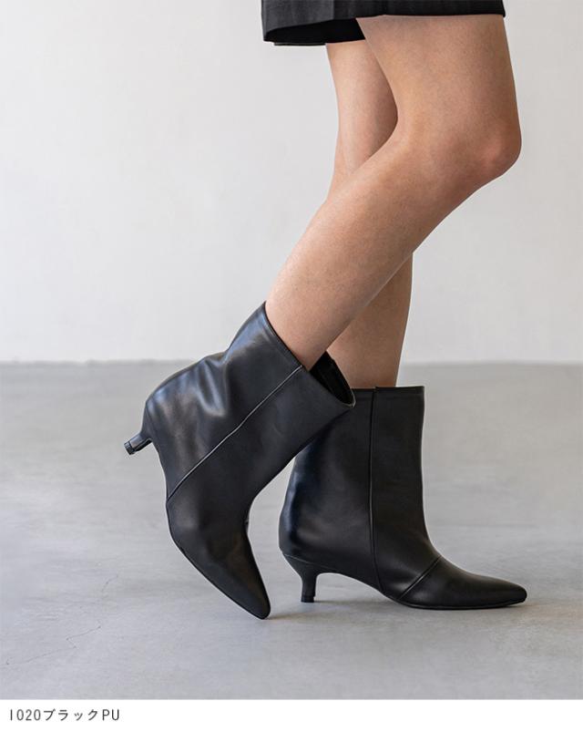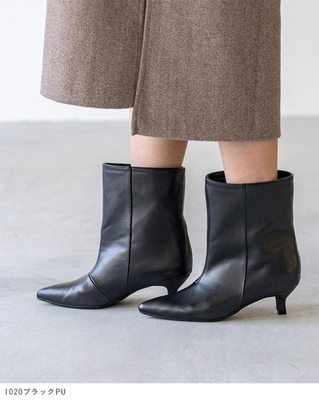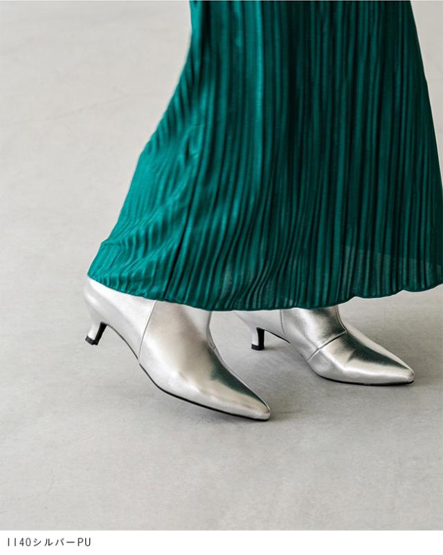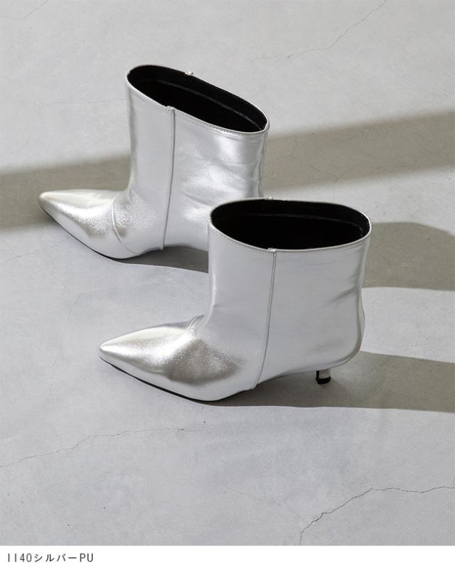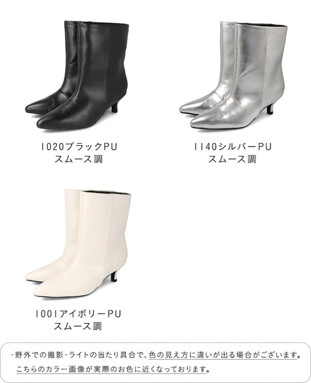 ブーツ ショートブーツ 5センチヒール ミドルヒール 痛くない 歩きやすい ポインテッドトゥ ワイド ブラック シルバー 送料無料