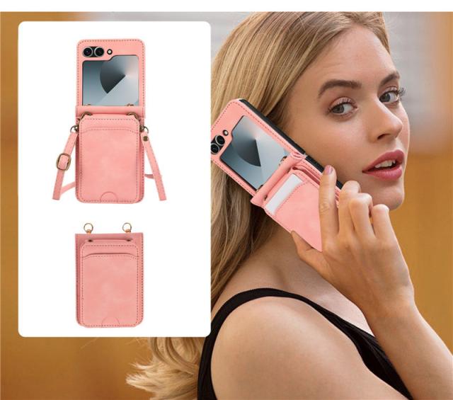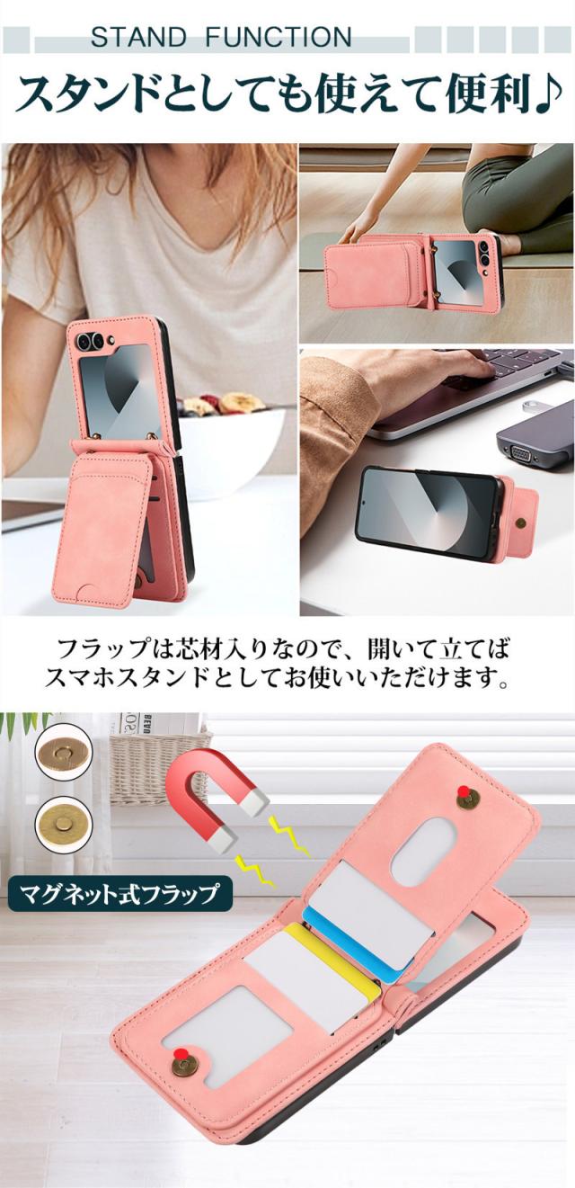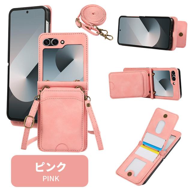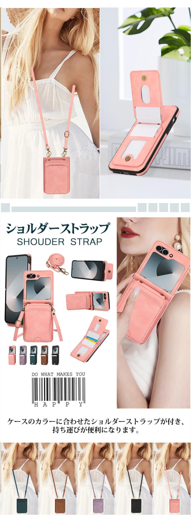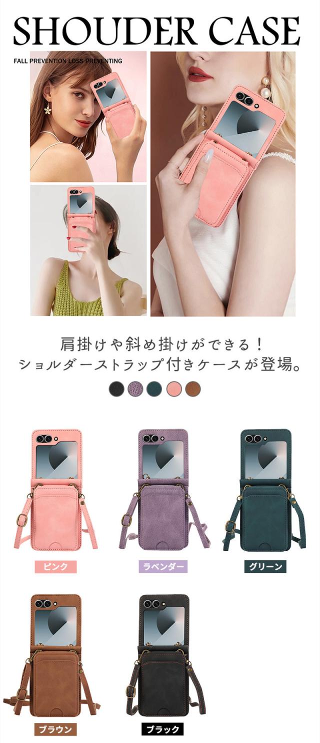 スマホケース ショルダー タイプ Galaxy Z Flip6/Flip5 ケース ショルダー ストラップ 肩掛け 紐 カード収納 大人かわいい おしゃれ Galaxy Z Flip5 ケースGalaxy Z Flip6 ケース スマホショルダー Galaxy Z Flip6 SC-54E ケースGalaxy Z Flip5 SC-54D SCG23 ケース 背面手帳